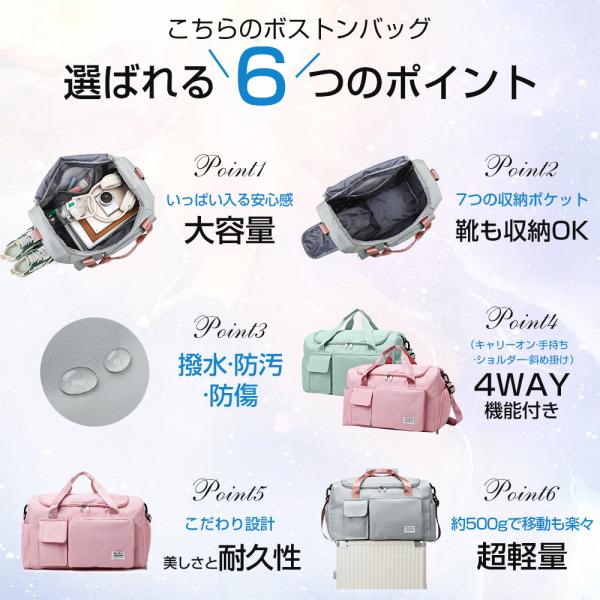 【7つポケット】ボストンバッグ レディース メンズ 4WAY 旅行バッグ カバン 大容量 キャリーオンバッグ スポーツバッグ 乾湿分離 シューズ収納 機内持ち込み