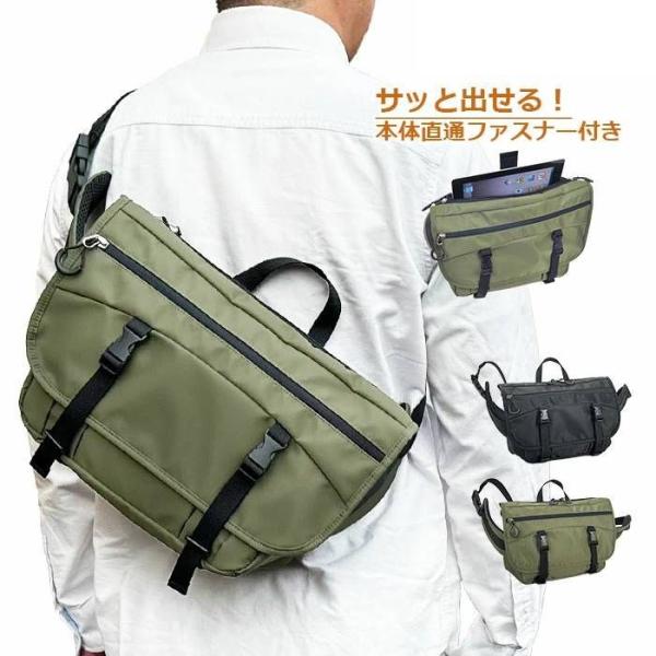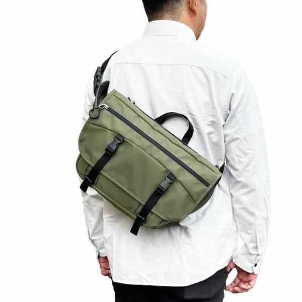 メッセンジャーバッグ メンズ ショルダーバッグ 斜めがけ ワンショルダーバッグ 自転車出勤 高密度ナイロン ブラック 黒 カーキ 33785 送料無料