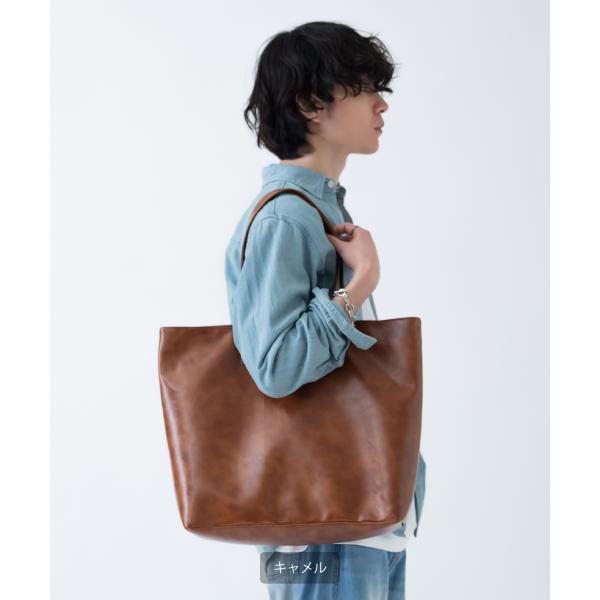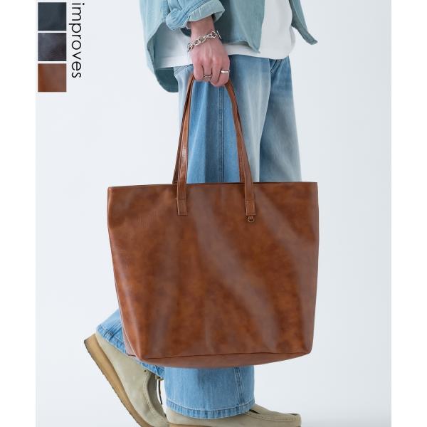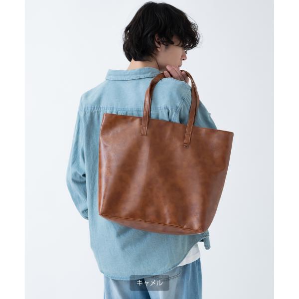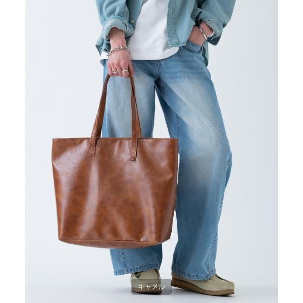 トートバッグ メンズ 合皮 レザー カバン 鞄 通学 通勤 旅行 きれいめ カジュアル 古着MIX 韓国ファッション Y2K ブラック ダークブラウン キャメル