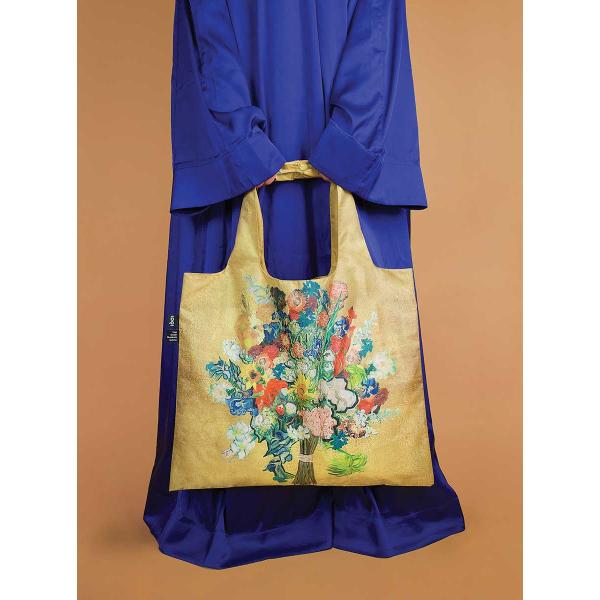 エコバッグ ローキー LOQI 正規品 Recycled Bag 折りたたみ ゴッホ美術館50周年記念 ヴィンセント・ヴァン・ゴッホ/花束 フラワーパターン ゴールド