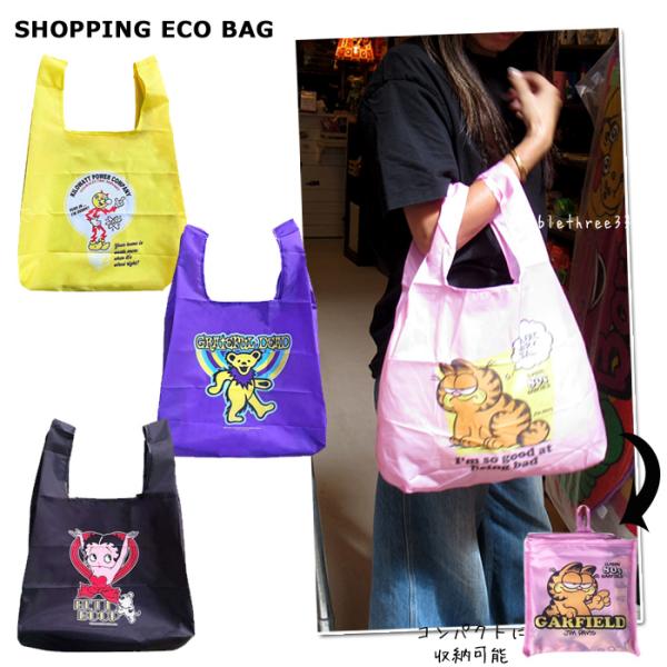 エコバッグ おしゃれ コンパクト 折りたたみ ベティ ガーフィールド レジ袋 ナイロン プチギフト プレゼント ノベルティ お礼 ご挨拶 ダブルスリー