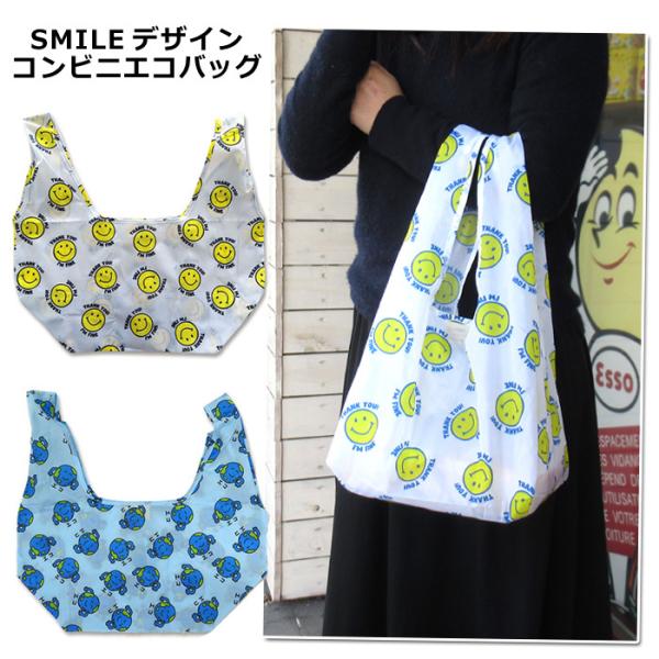 エコバッグ コンパクト マチ広 コンビニエコバッグ 折りたたみ にこちゃん スマイル おえかきシリーズ 持ち運び 簡単 インスタ映え ダブルスリー