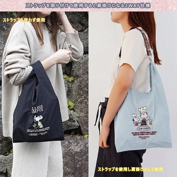 ピーナッツ ストラップ付ショッパーバッグ(エコバッグ ショッピングバッグ snoopy peanuts サブバッグ 折りたたみバッグ パッカブル)