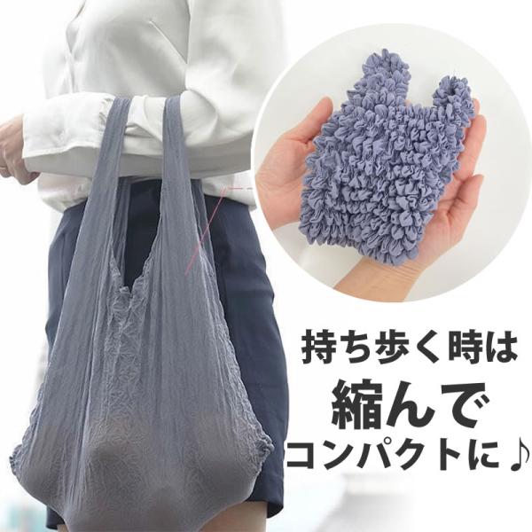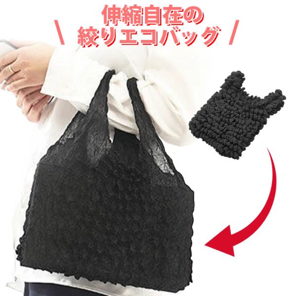 絞り エコバッグ くしゅくしゅ たたまない コンパクト トート バッグ レディース メンズ 大容量 耐荷重7kg お買い物袋 ドロールバッグ
