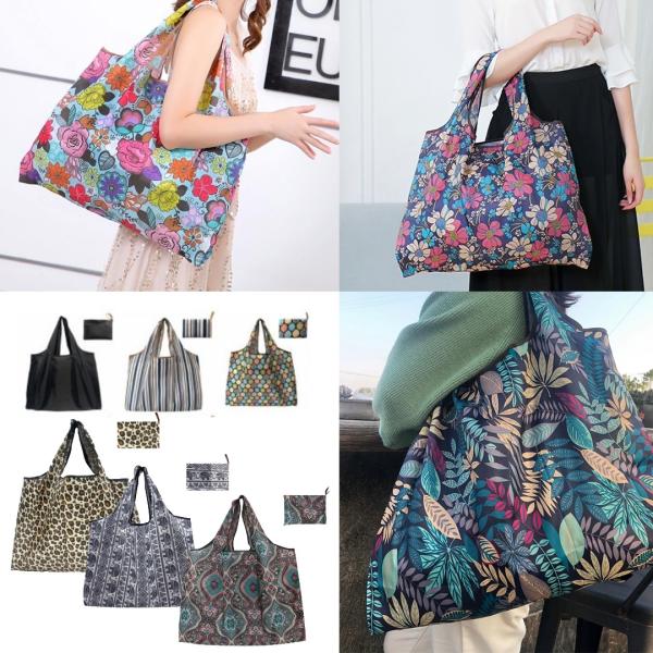 エコバッグ おしゃれ 大きめ 大容量 手提げ 収納 折りたたみ コンパクト 買い物 コンビニ 無地 花柄 ストライプ ヒョウ柄 ボタニカル