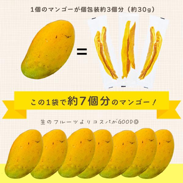 ドライマンゴー 無添加 完熟 210g 砂糖不使用 添加物不使用 個包装 タイ産 食物繊維 保存食 非常食 自然の甘さそのまま 送料無料 爆買 母の日
