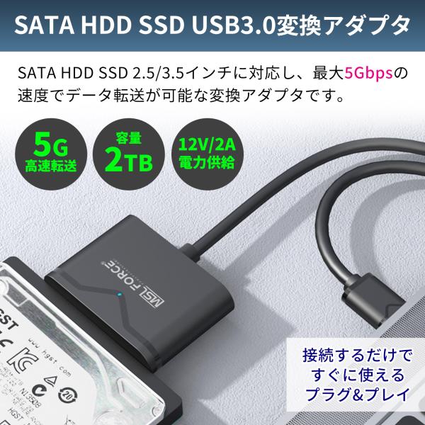 【最大600円OFF限定クーポン】SATA HDD SSD USB3.0 変換アダプタ 2.5/3.5インチ 5Gbps 高速転送 2TB 電源アダプタ付属なし sa0027 送料無料