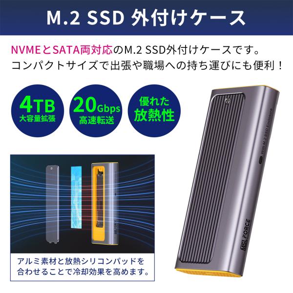 【最大600円OFF限定クーポン】SSD 外付けケース NVMe SATA ケース USB-C M.2 SSDケース USB3.2 Gen2x2 20Gbps Type C接続 4TB 送料無料 x0165-20g