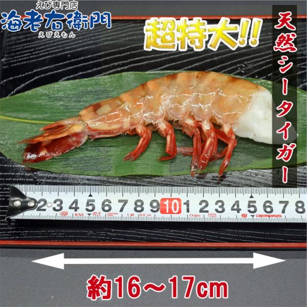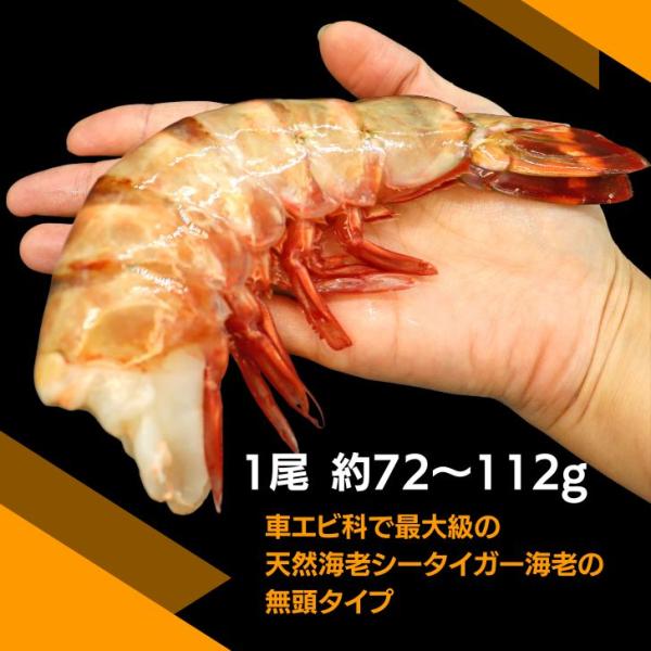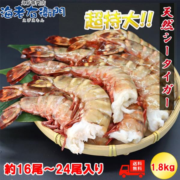 超超超特大サイズ 約16尾〜24尾入り 4/6サイズ 天然シータイガー 無頭えび 1.8kgです。 特大 巨大 高級 天然ブラックタイガー 業務用