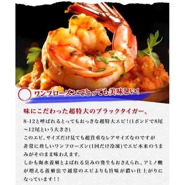超特大 ブラックタイガー 無頭エビ 1.8kg 8/12サイズ 約32〜48尾 業務用 殻付き ワンフローズン 海老 食品 海鮮 ギフト ポイント利用 爆買