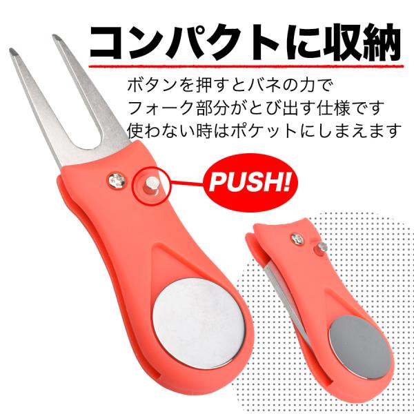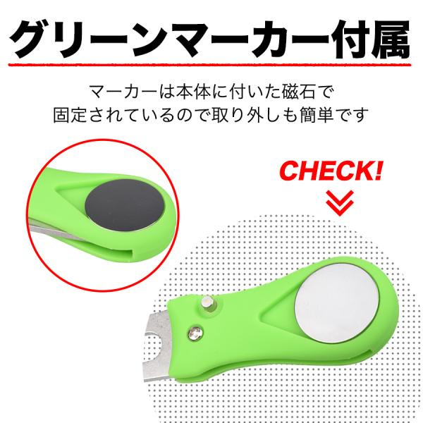 グリーンフォーク 軽い ゴルフフォーク マーカー付き 折りたたみ式 グリーンマーカー ゴルフ 用品 リペアツール ピッチマーク アクセサリー