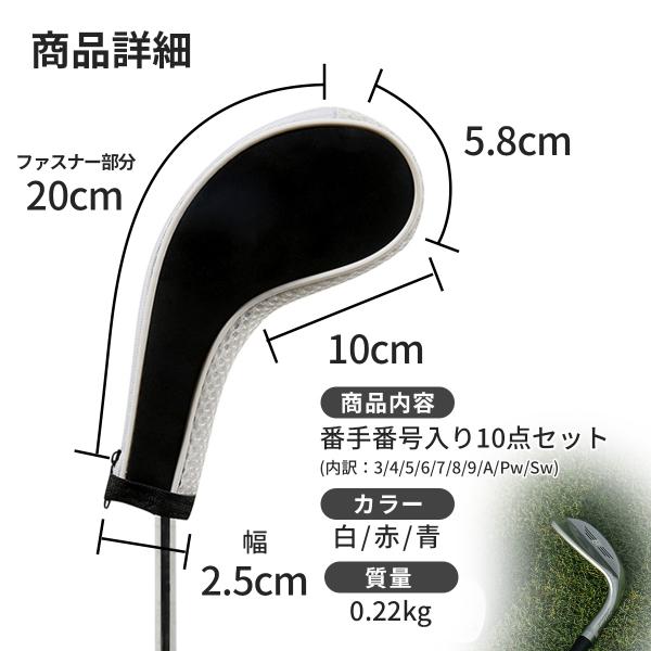 アイアンカバー セット 10点 10点セット ゴルフ カバー 単品 ファスナー ゴルフクラブ 赤 白 青 ヘッドカバー かっこいい おしゃれ 爆買