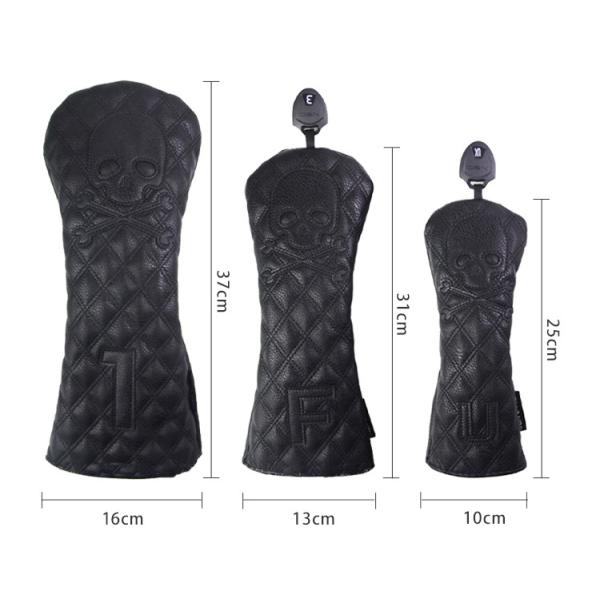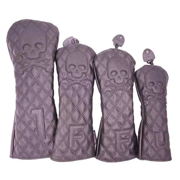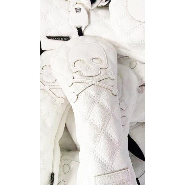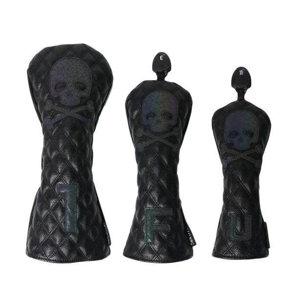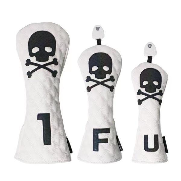 ゴルフヘッドカバー ドライバー/ウッド FW /ユーティリティ UT用 防水仕様 変換ダグ付き スカル 黒 白 単品