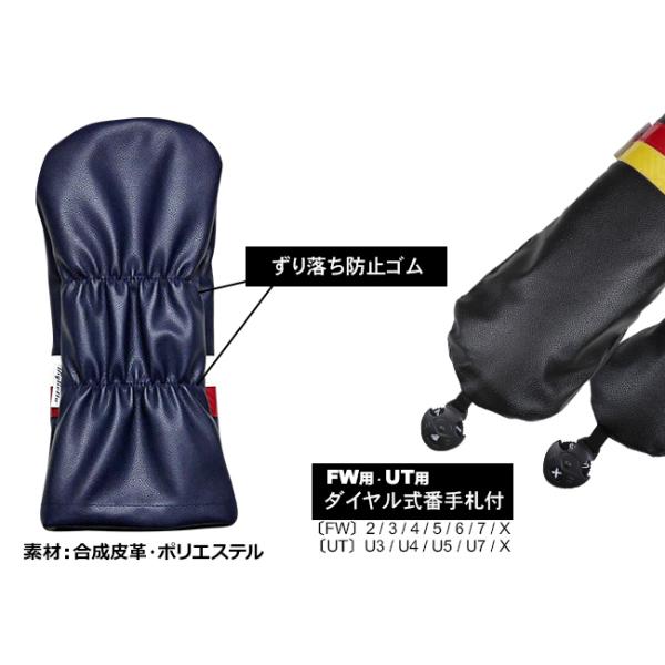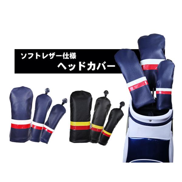 ゴルフ 単品 ヘッドカバー ドライバー フェアウェイ ユーティリティ 1W DR FW UT ソフトレザー風 合成皮革 ブラック ネイビー シンプル