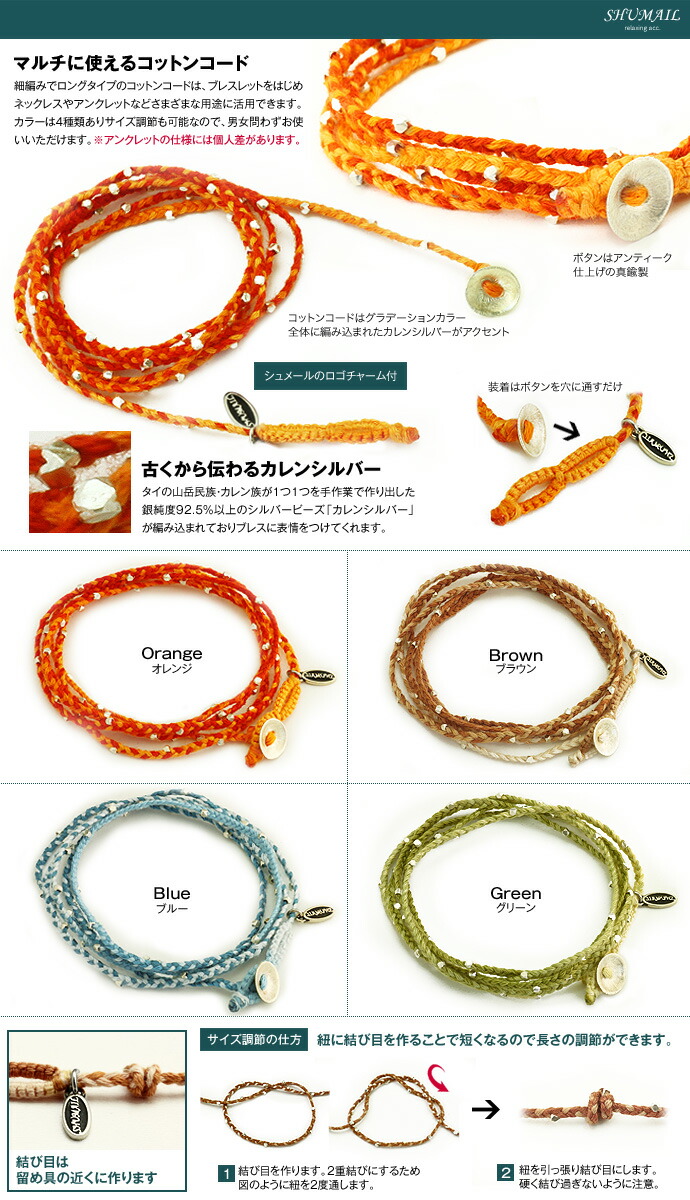 ミサンガ アンクレット ブレスレット ネックレス兼用 メンズ 多機能3WAY ブランド SHUMAIL シルバー925 レディース 足首 カップル お揃い ペアアクセサリー 男性
