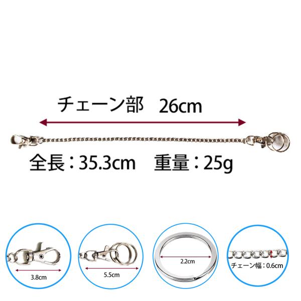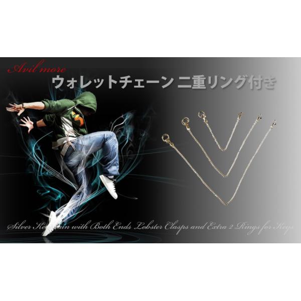AVILMORE ウォレットチェーン 二重リング付き キーホルダー キーチェーン ニッケル カニカン 26cm