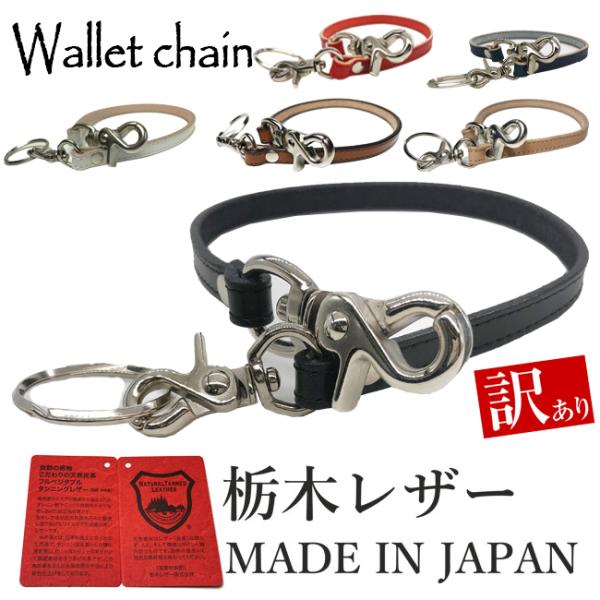 訳あり B品 アウトレット ウォレットチェーン 革 シンプル 栃木レザー レザー ショート 黒 茶色 キャメル ネイビー ホワイト レッド 牛革 日本製 本革