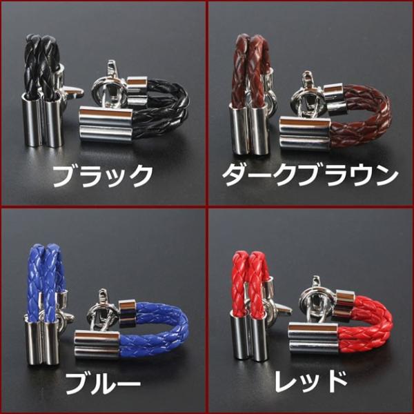カフス カフスボタン 編込みレザーロープ