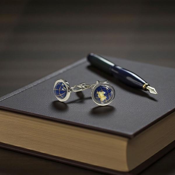 カフス カフスボタン ブルー地球儀
