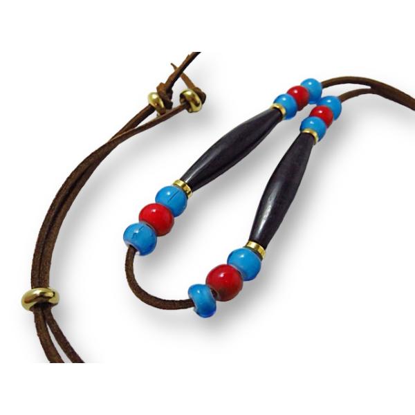 インディアンジュエリー ビーズネックレス 牛骨 革ひも フェイクスエード ナバホ ホワイトハーツ ターコイズ カウボーン, INCA