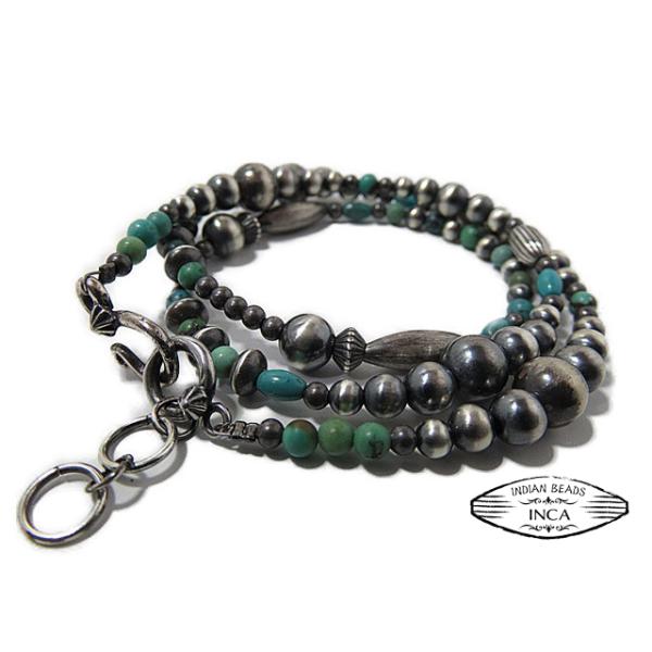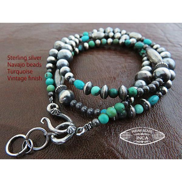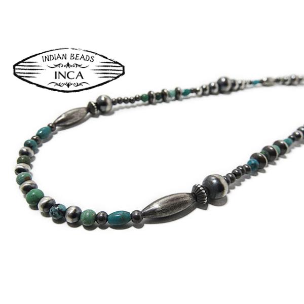 インディアンジュエリー ターコイズ ビーズ ネックレス シルバー925 チェーン ナバホ INCA