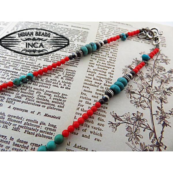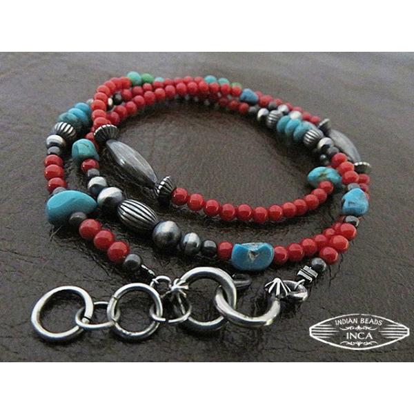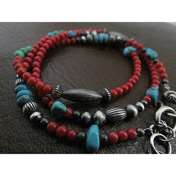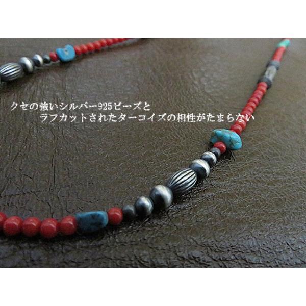 インディアンジュエリーネックレス ナバホ族 シルバー925 ターコイズ ナバホパールビーズ コーラル