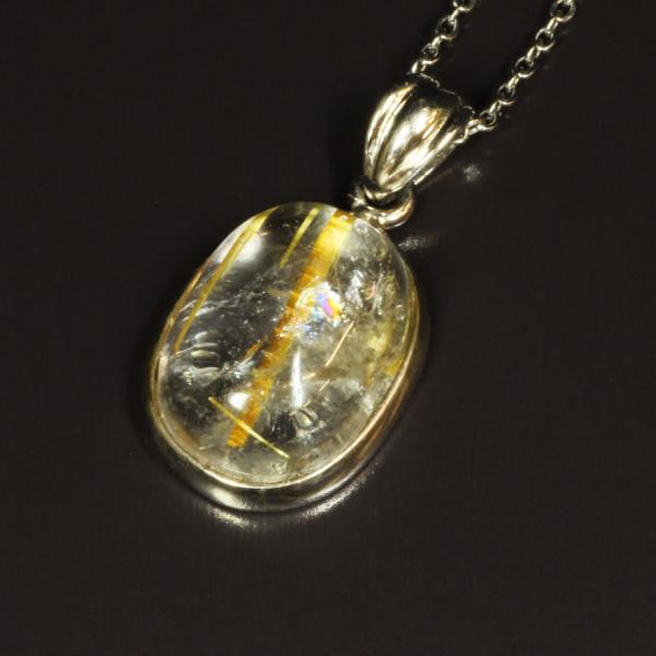 天然石 揺るぎない芯がある 一点物 レインボータイチンルチル ペンダント SV925 GTK 16 ケース付 お守り 送料無料