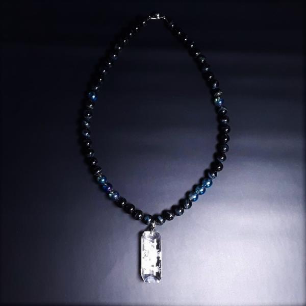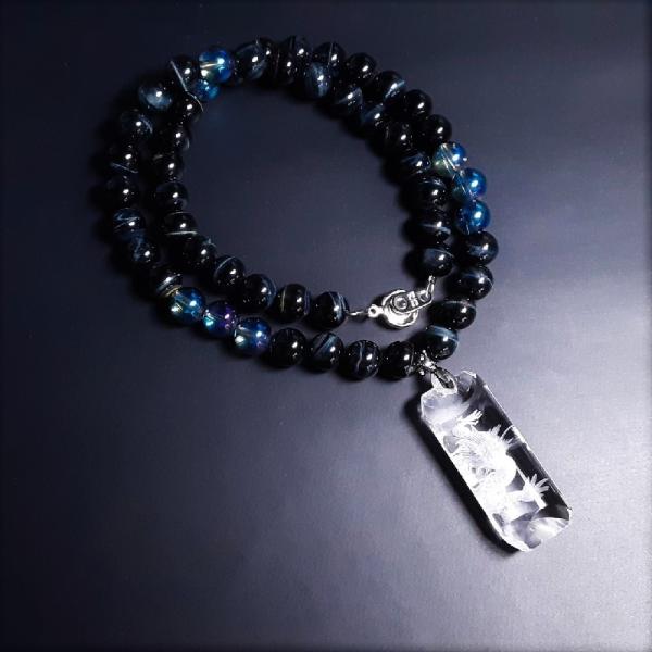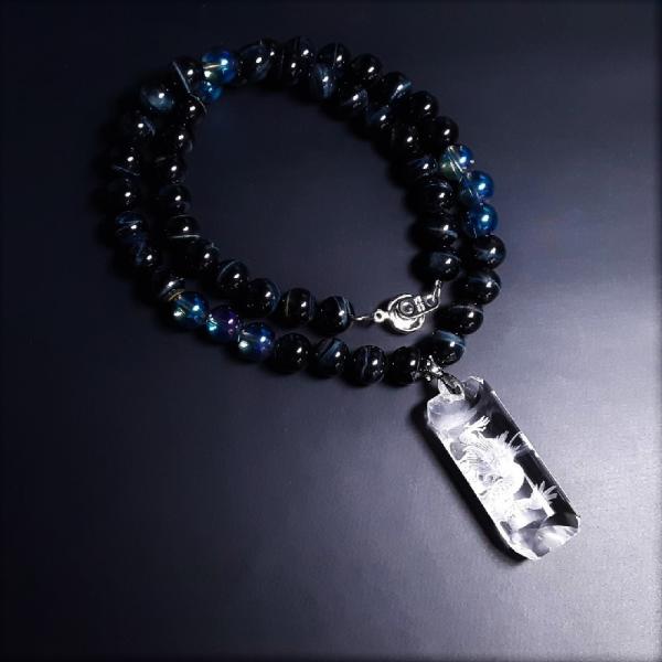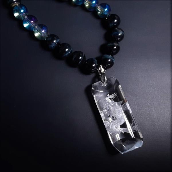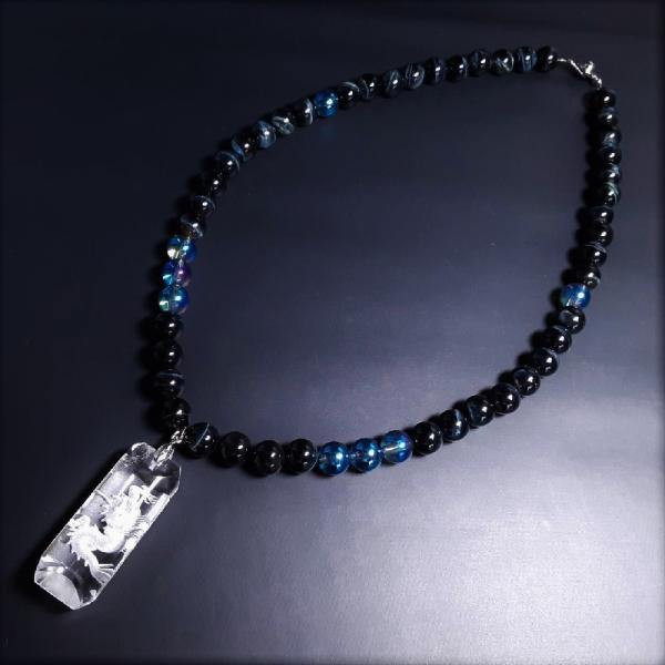 天然石 ネックレス 浮彫龍がかっこいい浮彫皇帝龍 水晶 クリスタル ブルーオーラ ブルータイガーアイ 開運桐箱付