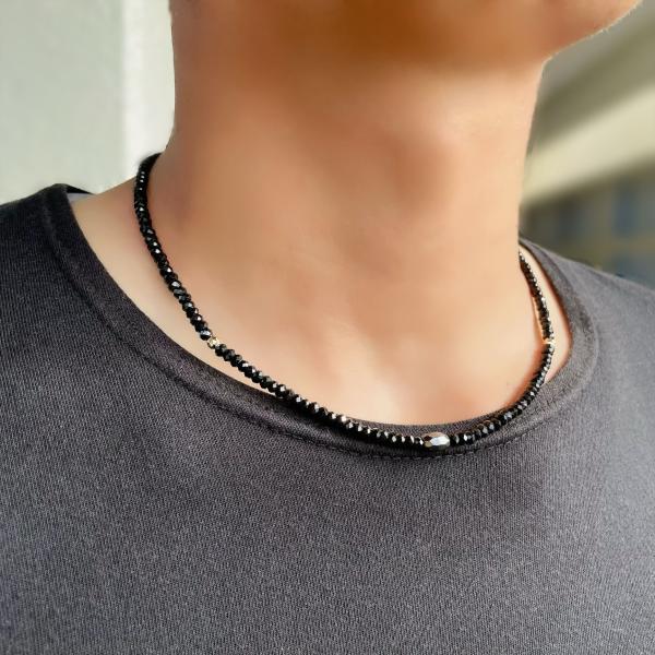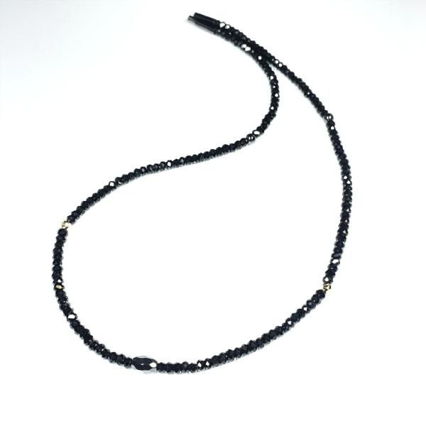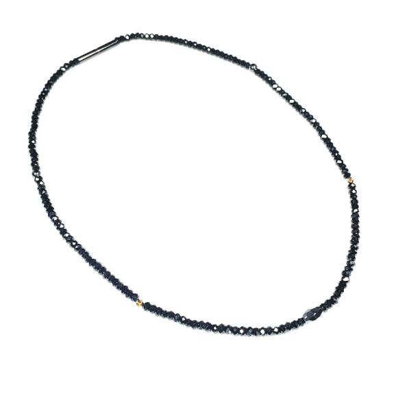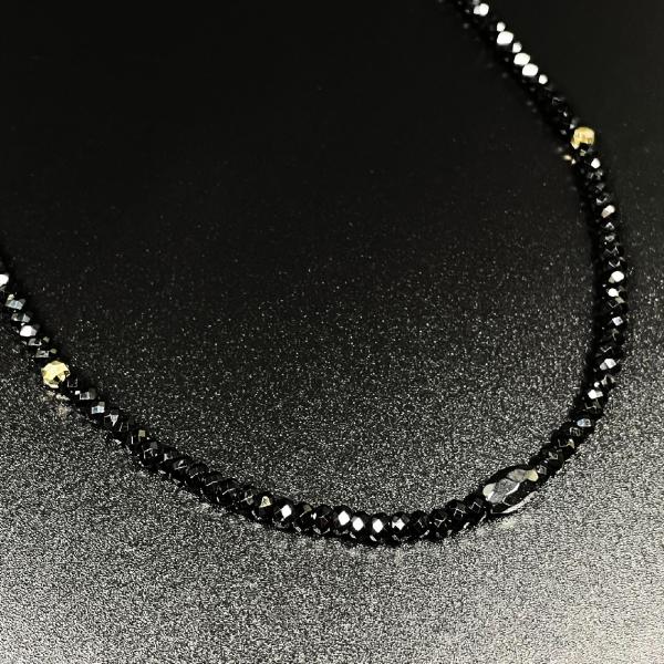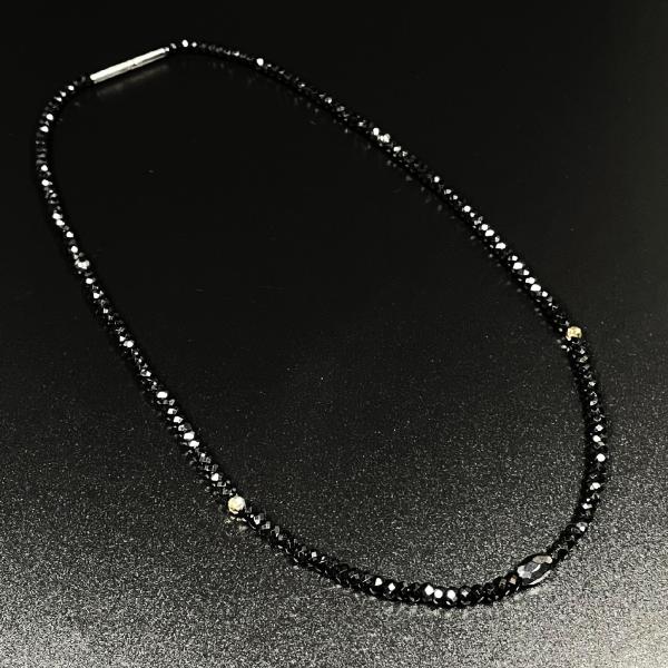 天然石 ネックレス 高級感溢れるデザイン K18 18金 ビーズ ブラックスピネル ヘマタイト 磁気 / SPKn3