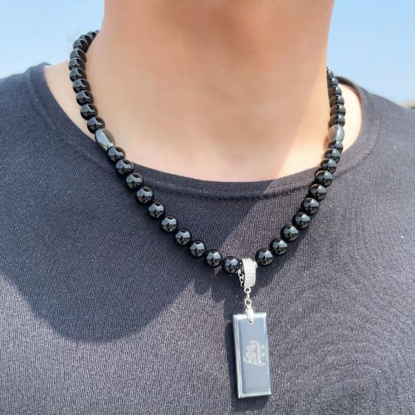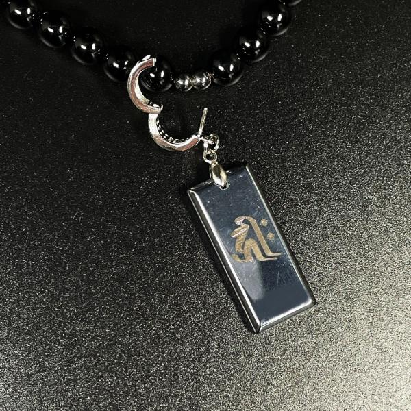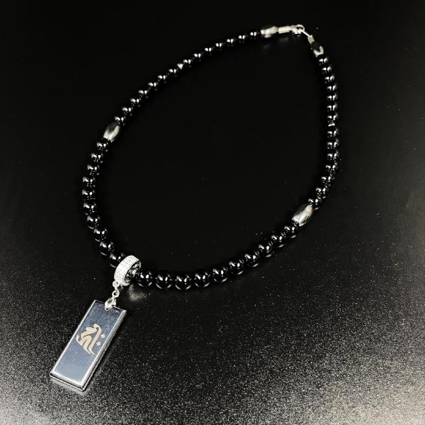 天然石 ネックレス 試練に耐えて目標達成 梵字彫テラヘルツプレート オニキス ヘマタイト 磁気 TER3 脱着クリッカー付