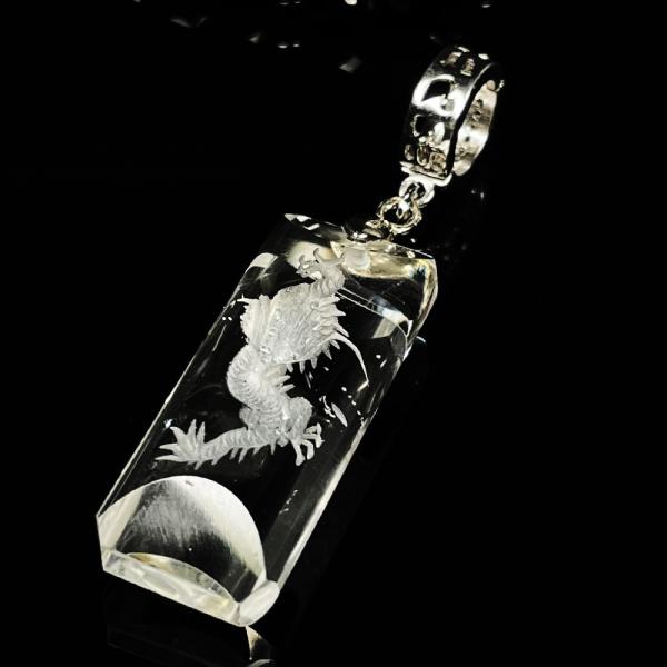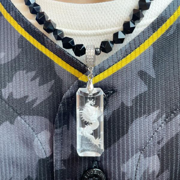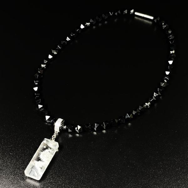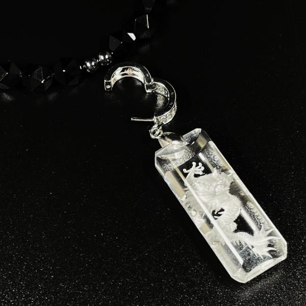 天然石 ネックレス ワイルドに決まる浮彫皇帝龍水晶プレート 20 面カットオニキス 磁気 ヘマタイト 金運 芸能人 URN 14