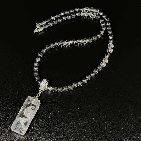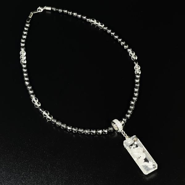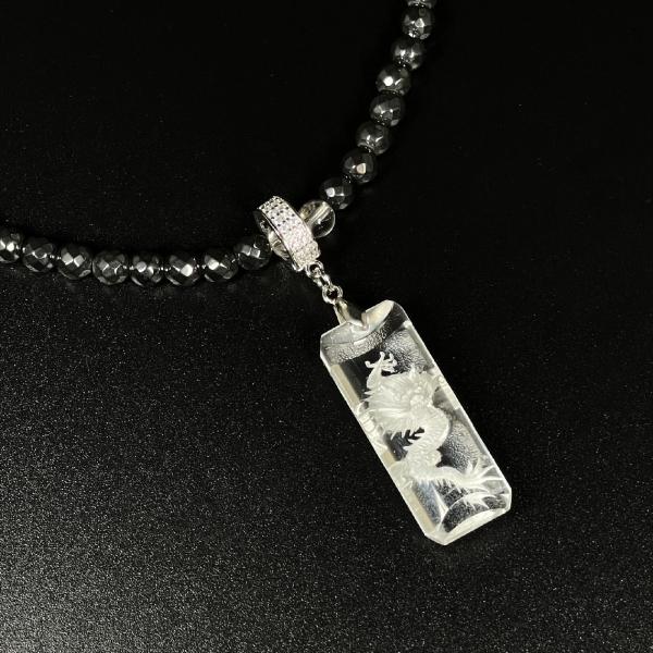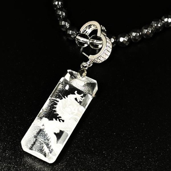 天然石 ネックレス 重厚感抜群の健康パワーストーン 浮彫龍水晶プレート カット ヘマタイト 磁気 プロ選手愛用 URN 15
