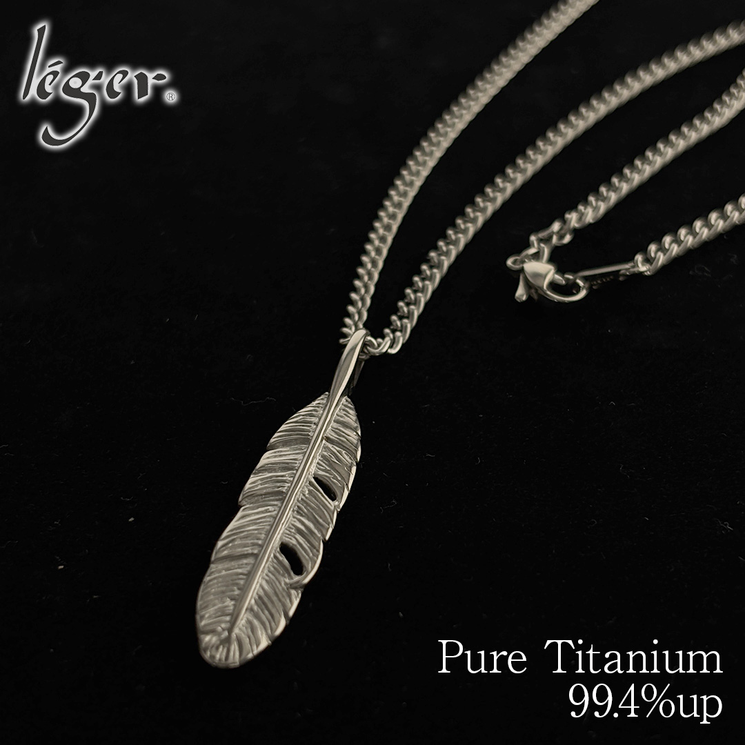 ネックレス 羽根 フェザー 羽 はね チタン 55m 喜平 3.5mm幅 チェーン メンズ 日本製 金属アレルギー対応 T65D55F レジエ レジェ leger