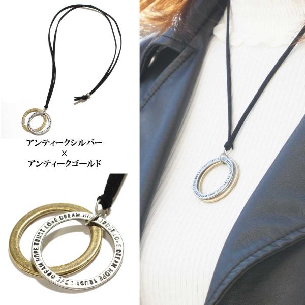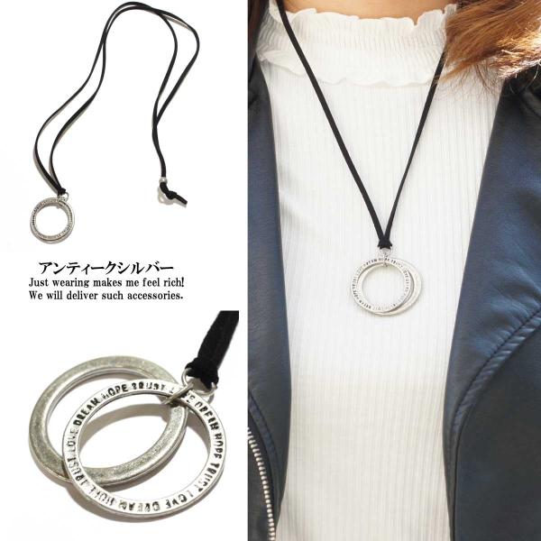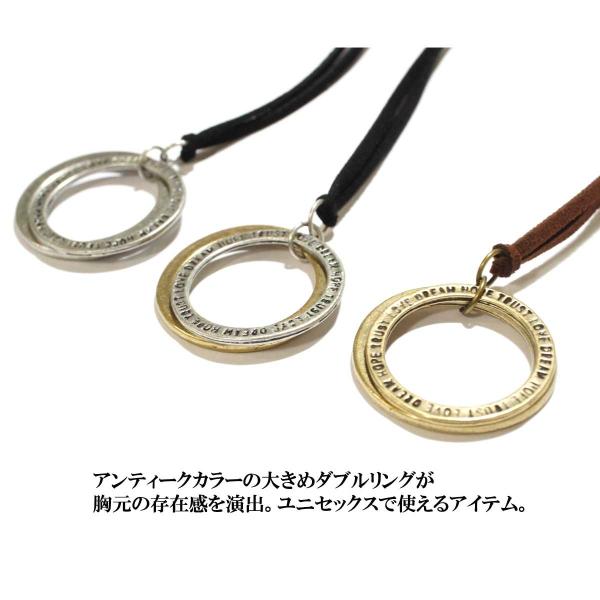 ネックレス メンズ メンズネックレス メンズアクセサリー レディースネックレス メッセージダブルリングレザーロングネックレス ユニセックス