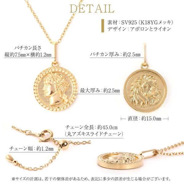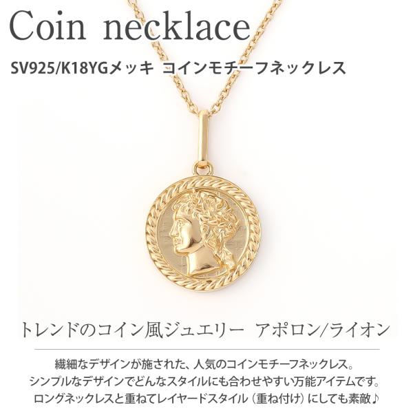 ネックレス レディース コイン K18 コーティング ペンダント コインネックレス 18金 シルバー SV925 ゴールドネックレス メンズ アポロン ライオン