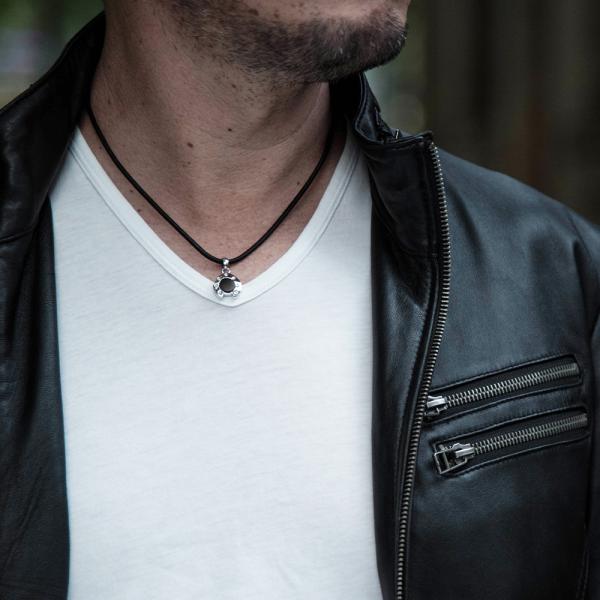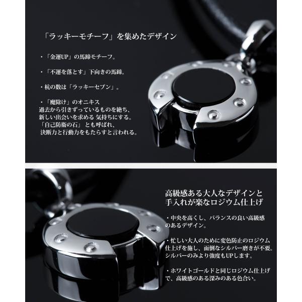 ネックレス メンズ シルバー925 ホースシュー 馬蹄 オニキス ブランド 革紐 レザー シンプル 天然石 30代 40代 おしゃれ 人気 necklace 名入れ 爆買