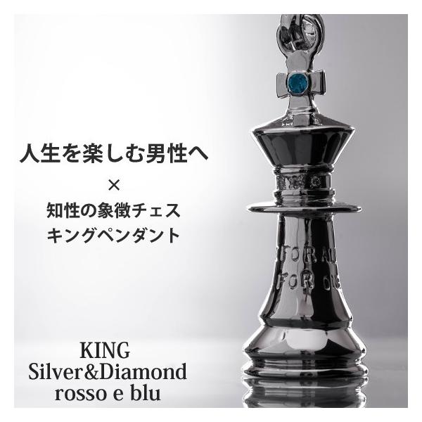 ネックレス メンズ チェス 駒 キング シルバー925 ダイヤモンド ロンドンブルートパーズ 革ひも ペンダント 誕生日 プレゼント
