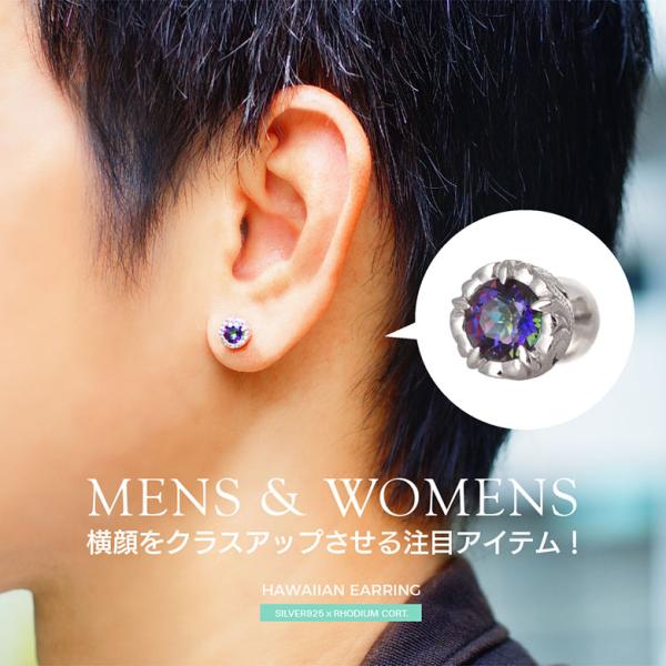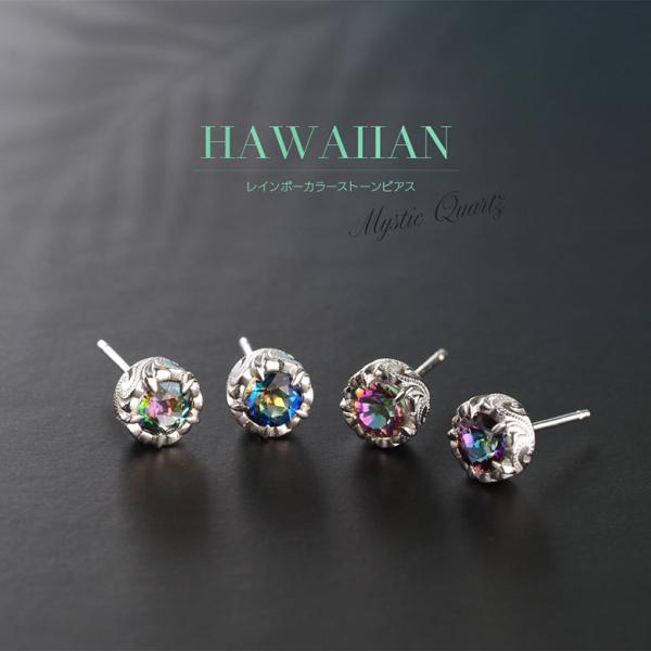 ハワイアンジュエリー ピアス 波模様 スクロール シルバー925 アクセサリー pi0552 虹色に輝く美しいストーン ハワイアン波ピアス 片耳用売り