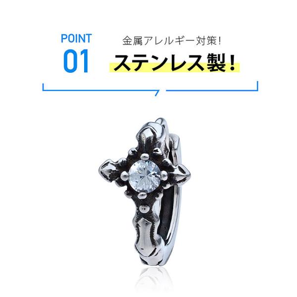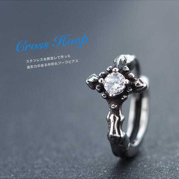 クロス フープ ピアス spi0093 ステンレスアクセサリー 片耳用ピアス ステンレス メンズ クロス 片耳用売り