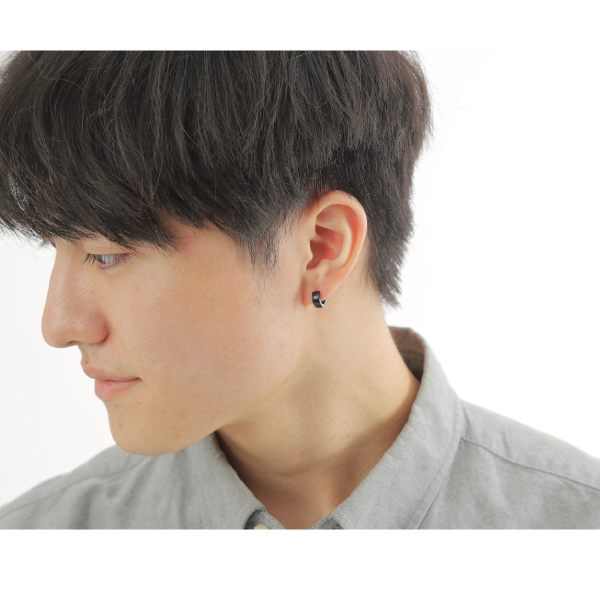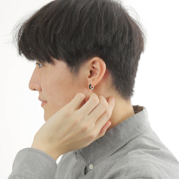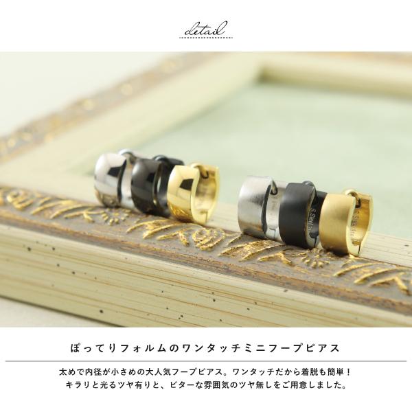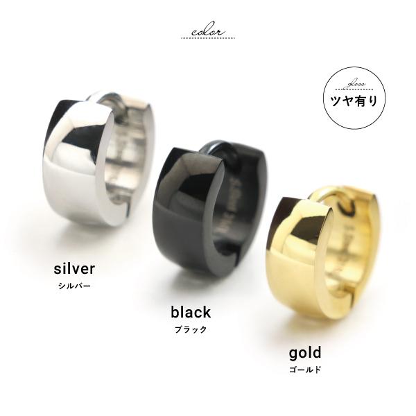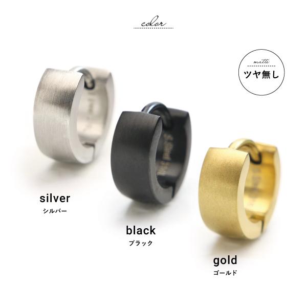 ピアス フープ ステンレス サージカルステンレス 金属アレルギー ワンタッチ キャッチレス リング 中折れ シルバー ブラック 小さめ 幅広 マット ツヤ 片耳用