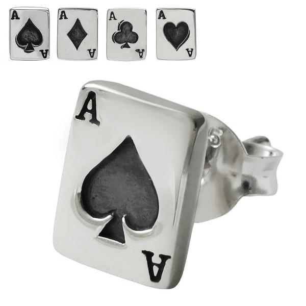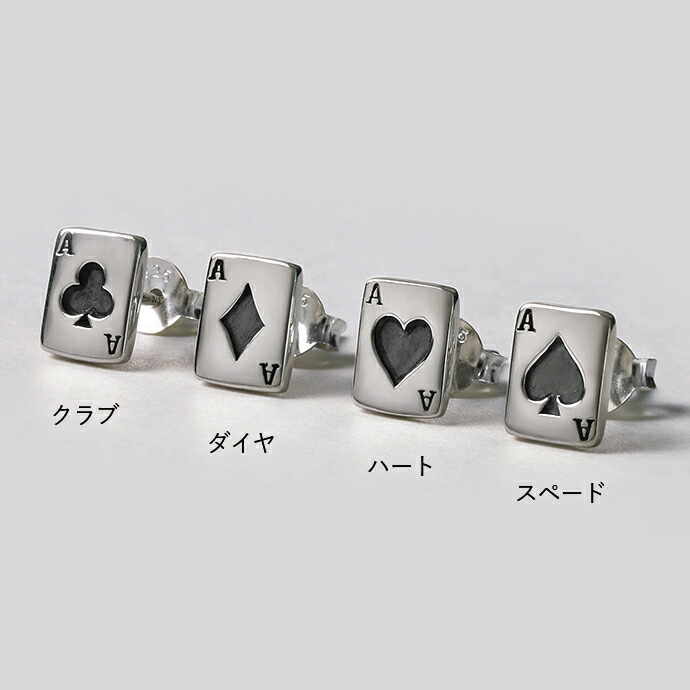 シルバー925 トランプ ピアス メンズ レディース 小さめ ミニチュア トランプ柄 カードゲーム カジノ おもしろ 遊び心 シルバーアクセサリー 遊び心 男性 片耳用