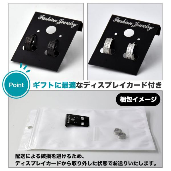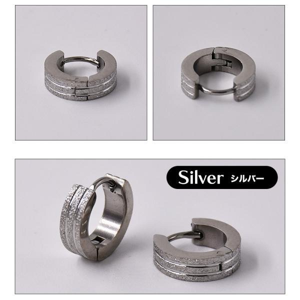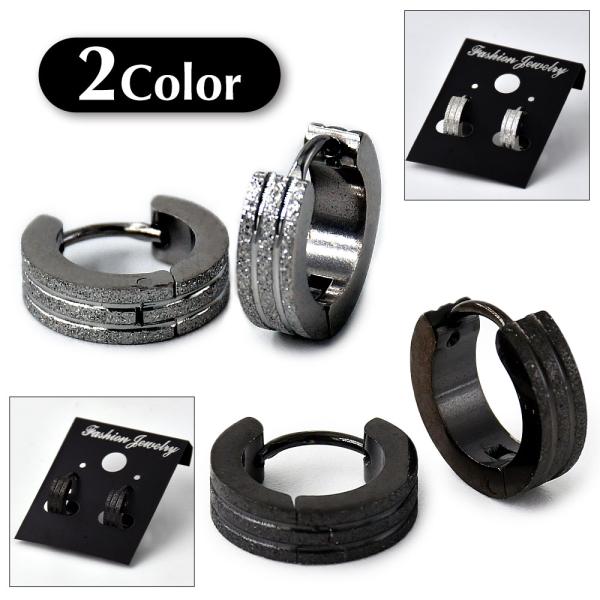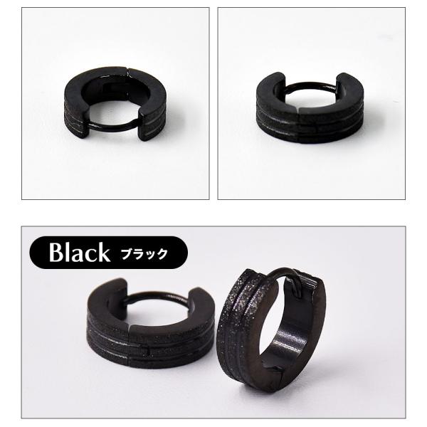 ボーナスストア対象 2セット フープピアス ブラック シルバー ストライプ 中折れ式 黒 銀色 両耳セット 2個1組 ステンレス ロック