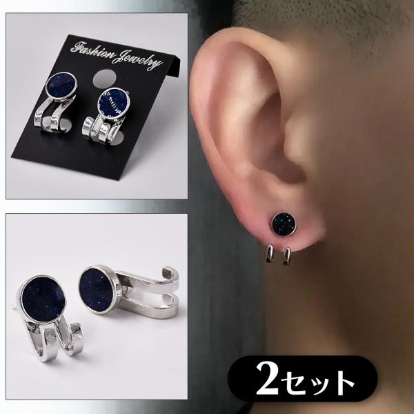ボーナスストア対象 2セット スタッドピアス ブラック シルバー 銀色 ネイビー パンク ロック ギフト 両耳セット 2個1組 韓国 シンプル レディース