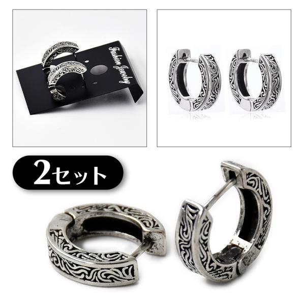 ボーナスストア対象 2セット フープピアス 柄模様 両耳セット アラベスク シルバー 銀 2個1組 リング スタイリッシュ ギフト レディース
