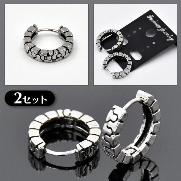 ボーナスストア対象 フープピアス 2セット 中折れ式 両耳セット 蛇腹 リング シルバー 銀色 2個1組 ギフト ユニセックス オシャレ レディース