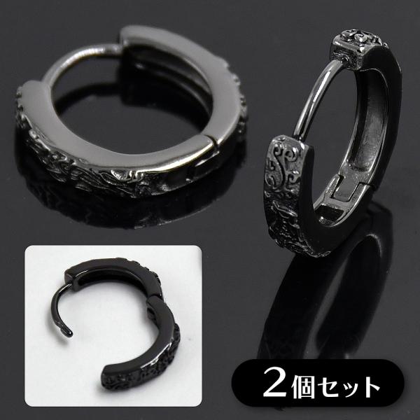 ボーナスストア対象 ガンメタリック ピアス 2個セット 中折れ式 両耳セット グレー アッシュブラック アラベスク 黒 ロック シック メンズ レディース