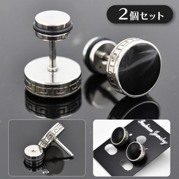ボーナスストア対象 ロック式 スタッドピアス 2個セット シルバー ブラック ネジ 両耳セット ダンベル型 銀 黒 2個1組 ギフト 男女 レディース メンズ