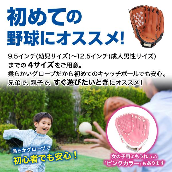 グローブ 野球 練習 子供 大人 柔らかグローブ キャッチボール 少年野球 ジュニア用 単品 選べる4サイズ 9.5インチ 10.5インチ 11.5インチ 12.5インチ