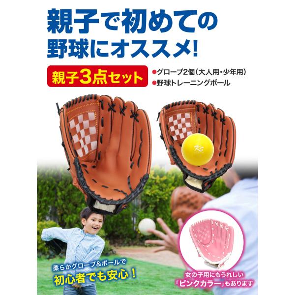 グローブ 野球 セット 練習 親子 子供 野球グローブ 子供用 大人用 キャッチボール 少年野球 グローブ2個 10.5+12.5インチ トレーニングボール付き 130g