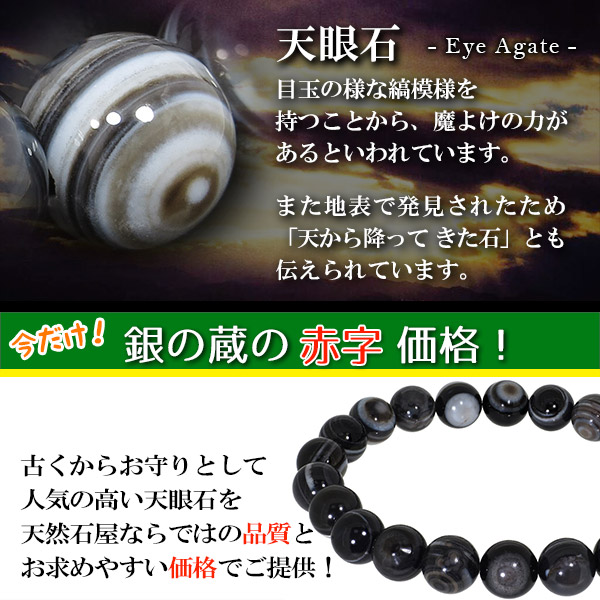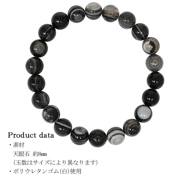 天眼石 ブレスレット 8mm 16.5cm〜20.5cm S〜LL サイズ 天然石 パワーストーン アイアゲート 瑪瑙 メノウ 縞瑪瑙 メンズ レディース お守り 厄除け